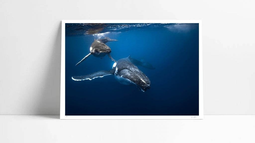 In a slow, spiralling turn, mother and calf mirror one another beneath the surface - graceful, fluid, and instinctively in sync. These early movements are not just practice, but the calf beginning to understand the ocean through the body of its mother, learning not through words, but through motion, presence, and trust.